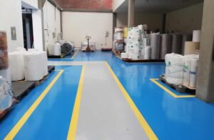• Seguridad: muchos pisos industriales incluyen propiedades antideslizantes, esenciales en entornos donde la seguridad de los trabajadores es prioritaria.